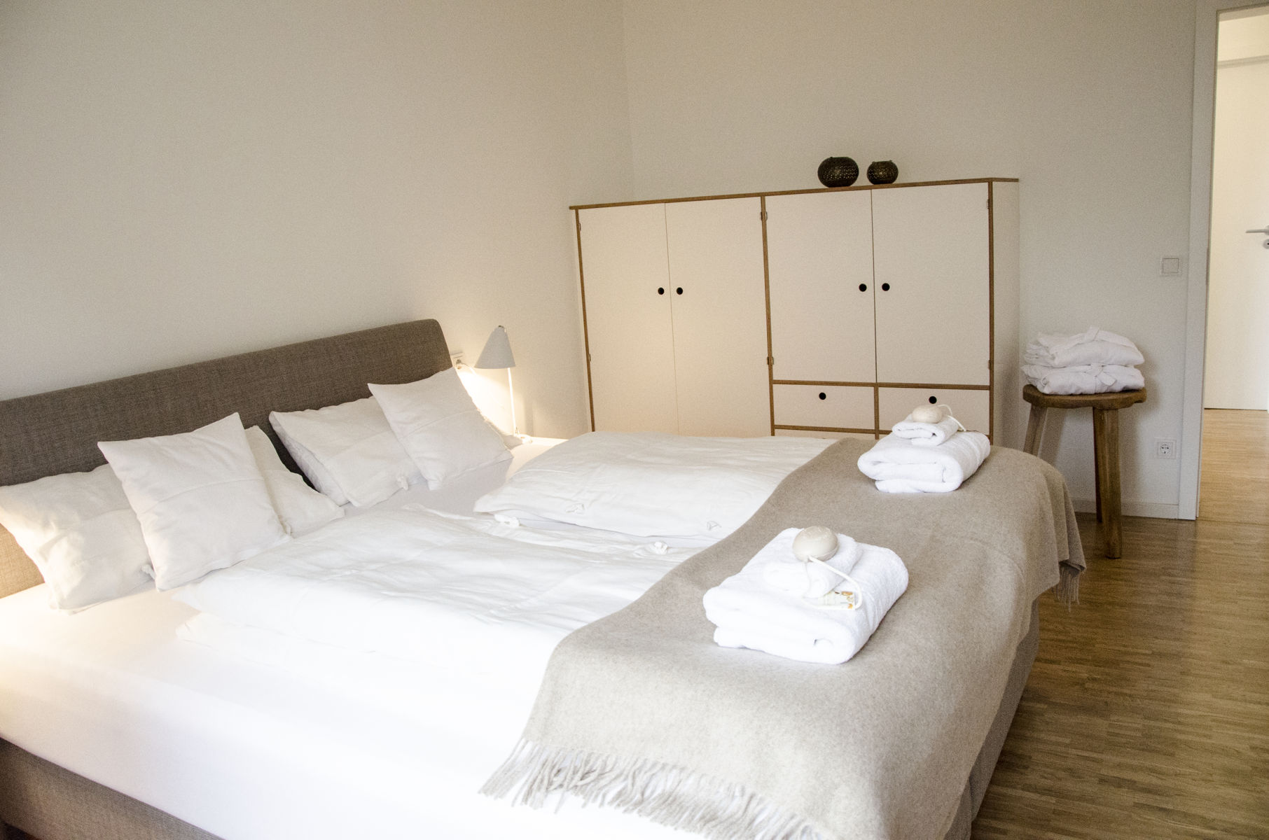 Die Wohnung ist am Anreisetag ab 16.00 h bezugsfertig. Teilen Sie uns bitte Ihre Ankunftszeit mit, um die Schlüsselübergabe zu organisieren. Am Abreisetag ist die Wohnung bis um 10.00 h besenrein zu verlassen.